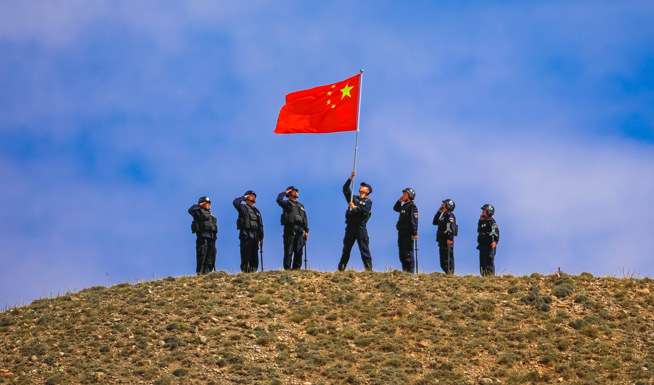 9月22日,位于祖國(guó)西北邊陲阿拉套山腳下的新疆博州邊境管理支隊(duì)組織民警帶上國(guó)旗來到邊境轄區(qū),通過國(guó)旗前宣誓、帶國(guó)旗巡邏、向國(guó)旗致敬、給各族群眾送國(guó)旗等方式,讓國(guó)旗飄揚(yáng)在阿拉套山下的每一寸土地,和轄區(qū)各族群眾一起喜迎新中國(guó)成立70周年。