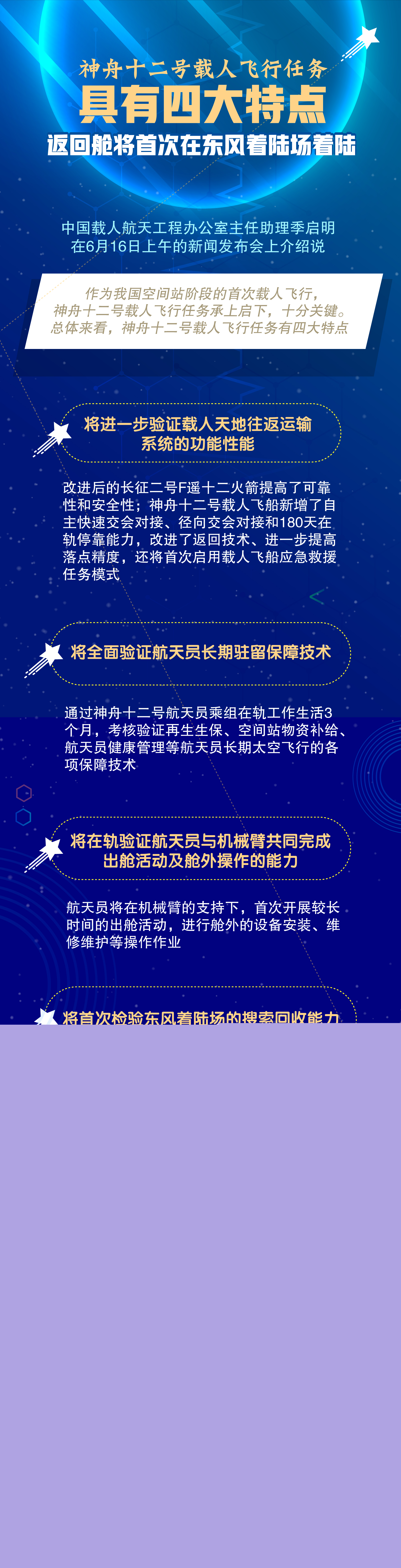 圖表:神舟十二號載人飛行任務具有四大特點 返回艙將首次在東風著陸場著陸