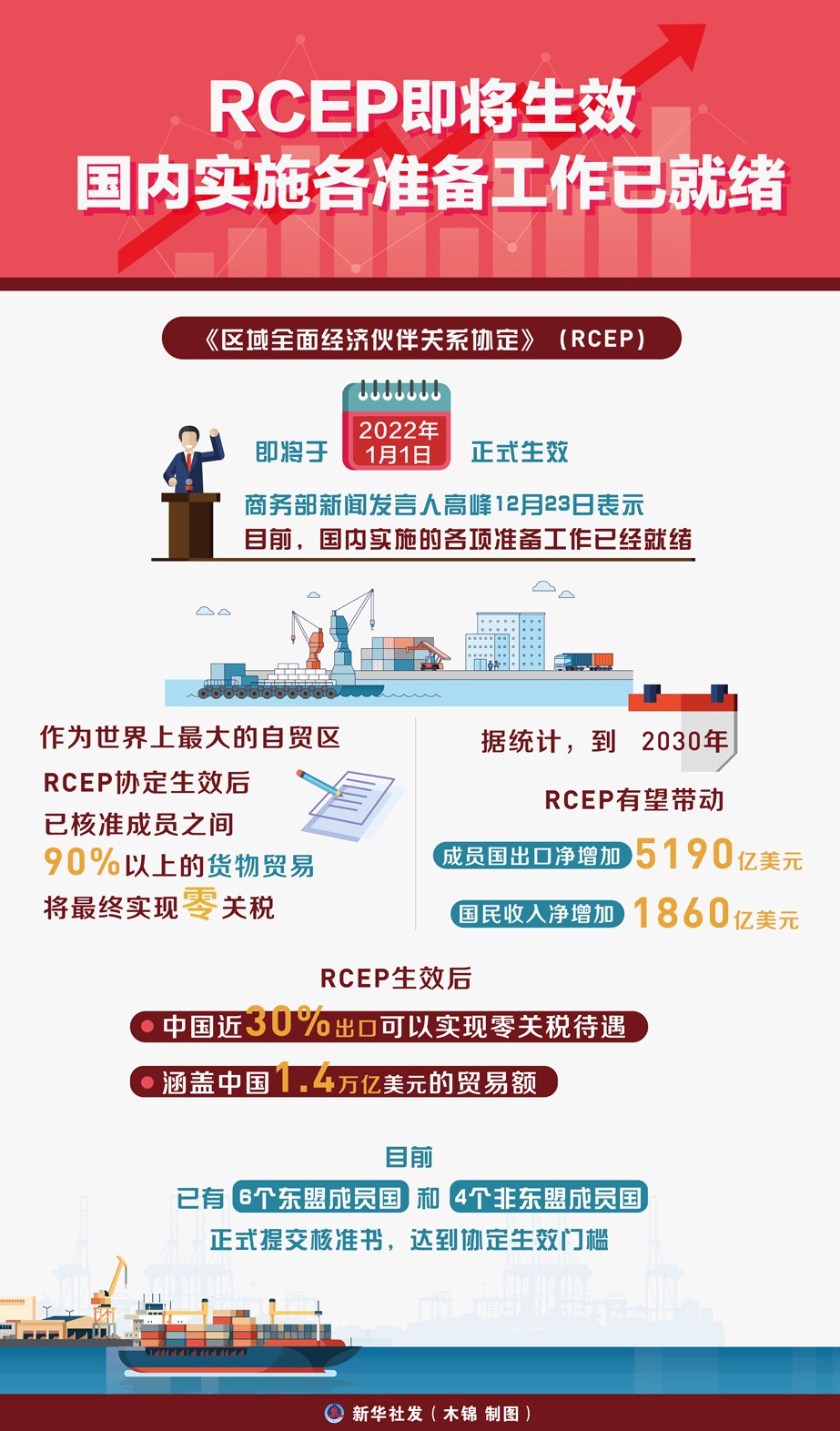 《區(qū)域全面經(jīng)濟伙伴關(guān)系協(xié)定》(RCEP)即將于2022年1月1日正式生效。商務部新聞發(fā)言人高峰12月23日表示,目前,國內(nèi)實施的各項準備工作已經(jīng)就緒。