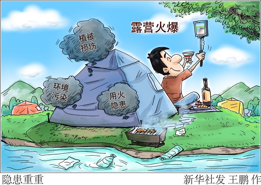 “新華視點”記者調查發(fā)現,部分露營者選擇不具備基礎條件的地點露營,由于缺乏專業(yè)的規(guī)范引導,產生了植被損傷、環(huán)境污染、用火隱患等問題。