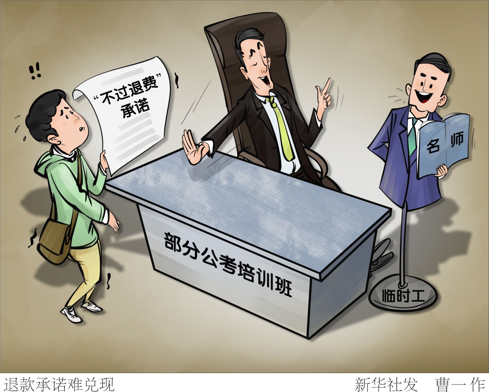 眼下,國家、地方公務(wù)員及選調(diào)生考試筆試大都已經(jīng)結(jié)束,一些地方面試因疫情推遲。為應(yīng)對公考筆試、面試,不少大學(xué)畢業(yè)生參加各種培訓(xùn)班?!靶氯A視點”記者調(diào)查發(fā)現(xiàn),有些培訓(xùn)機構(gòu)所謂的“名師”,竟是招聘的“臨時工”;所謂“不過退費”,有的難以實現(xiàn)。