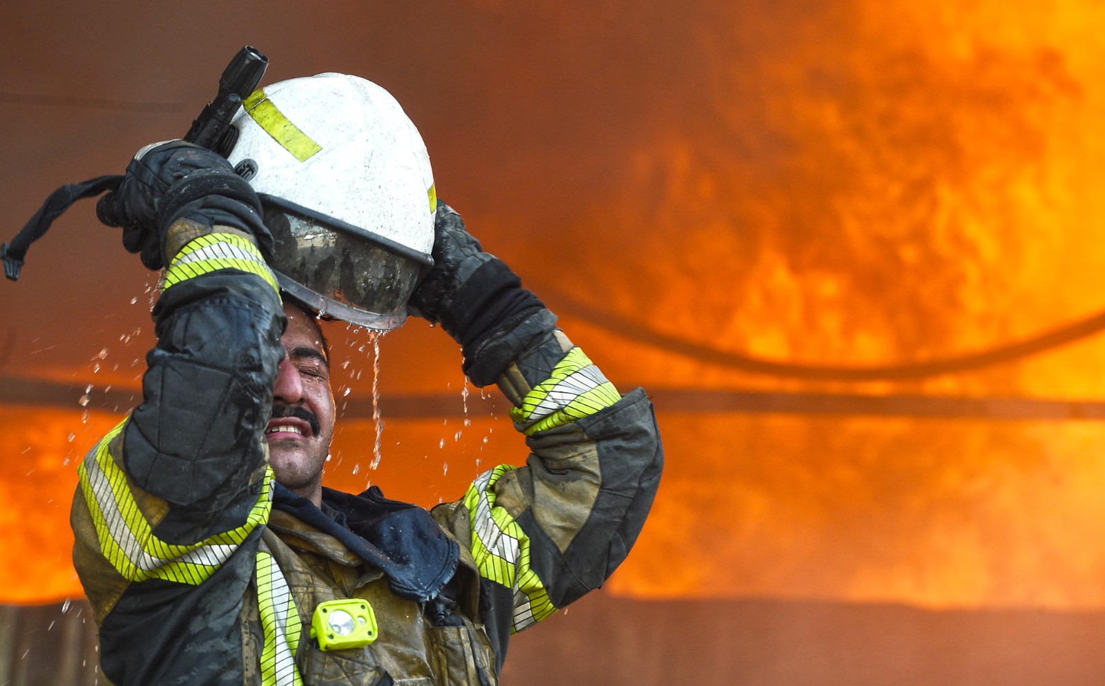 5月30日,消防員在科威特首都省一處發(fā)生火災的帳篷市場工作。