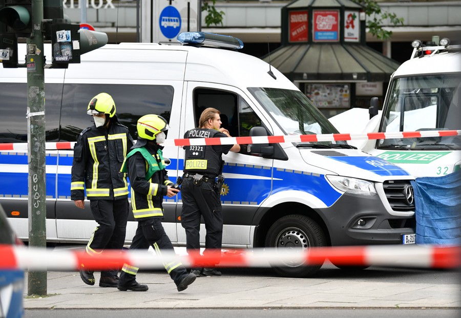6月8日,警察在德國(guó)柏林車輛沖入人群事件現(xiàn)場(chǎng)工作。