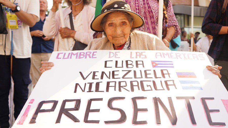 當(dāng)日,美洲峰會(huì)在洛杉磯會(huì)議中心落幕,民眾舉行游行抗議美國(guó)的外交政策。