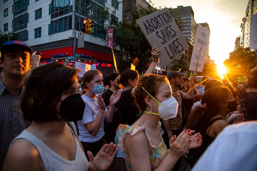 6月24日,墮胎權(quán)支持者在美國(guó)紐約街頭抗議。