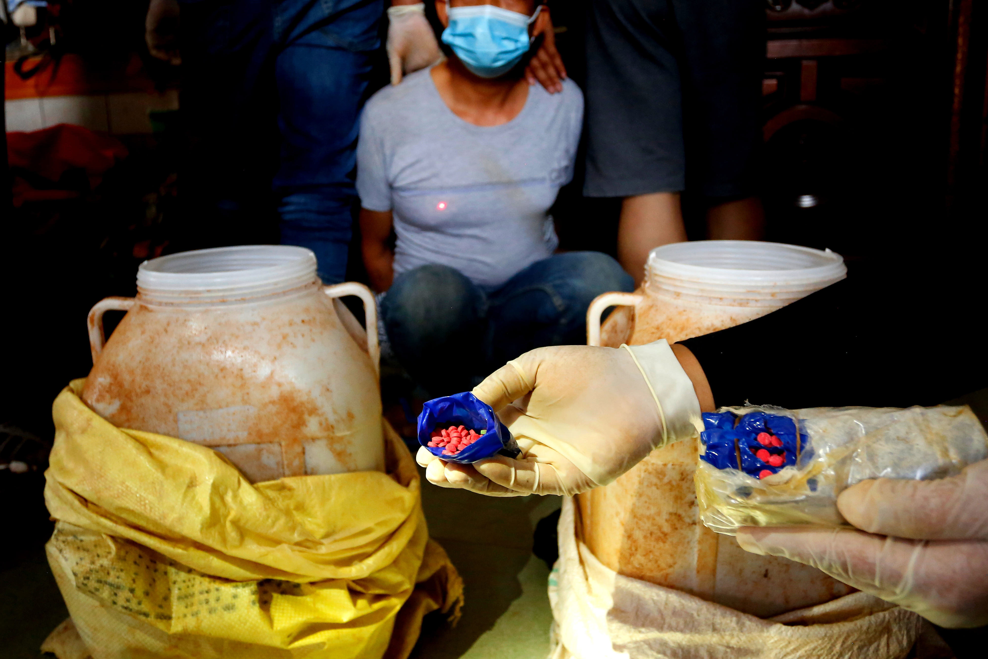 6月22日,在第35個(gè)國(guó)際禁毒日即將來(lái)臨之際,云南省德宏州在芒市公開(kāi)銷毀查獲的海洛因、冰毒、鴉片、嗎啡、咖啡因等各類毒品4.87噸。圖為民警在對(duì)毒品進(jìn)行稱量。