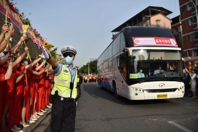 6月7日,2022年度全國(guó)高考正式拉開(kāi)帷幕。為確保高考安全順利進(jìn)行,遼寧省燈塔市公安局成立高考安保服務(wù)工作領(lǐng)導(dǎo)小組,為廣大考生提供優(yōu)質(zhì)高效的警務(wù)服務(wù),全力保障高考的順利進(jìn)行。圖為考生對(duì)民警的傾力守護(hù)表達(dá)感謝。