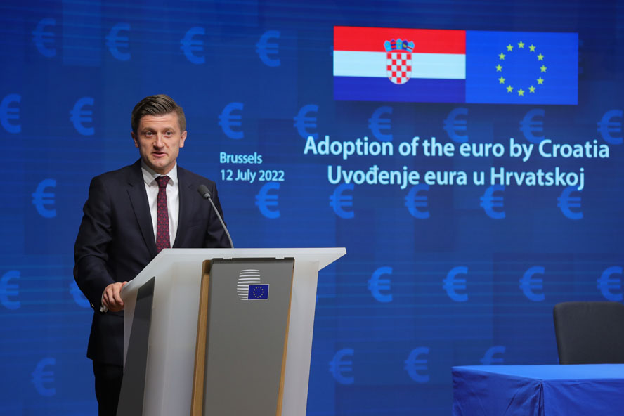 7月12日,克羅地亞副總理兼財(cái)政部長茲德拉夫科·馬里奇在比利時(shí)布魯塞爾出席克羅地亞加入歐元區(qū)法律文件簽署儀式。