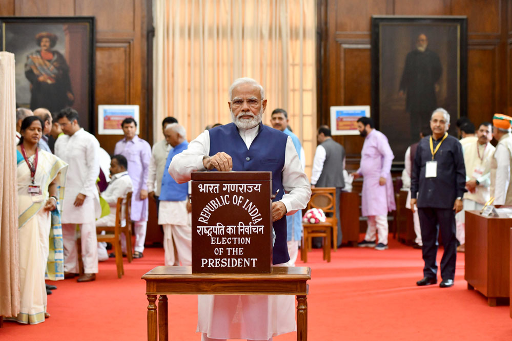 7月18日,印度總理莫迪在新德里參加總統(tǒng)選舉投票。