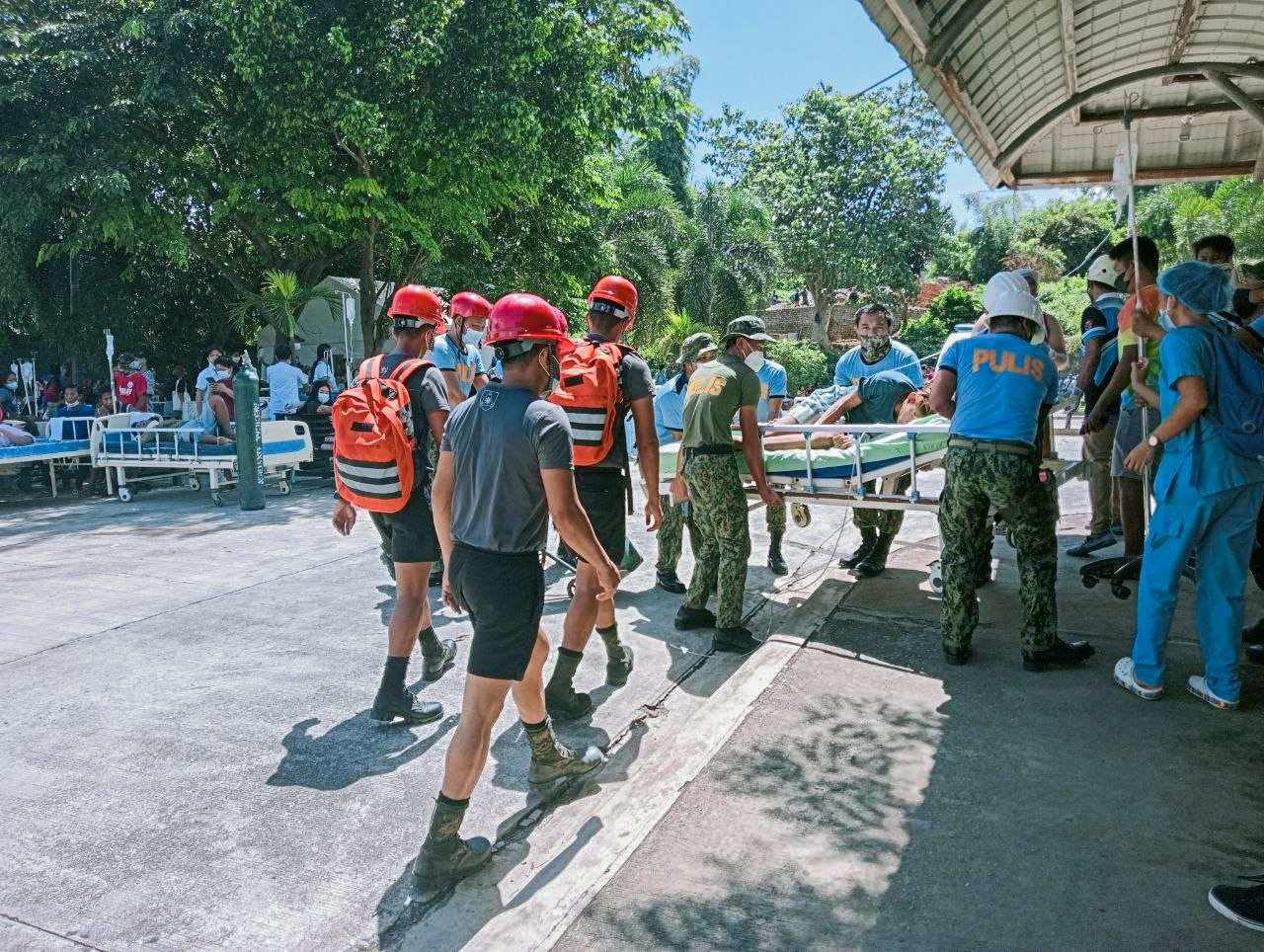 7月27日,救援人員在菲律賓阿布拉省運(yùn)送傷者。