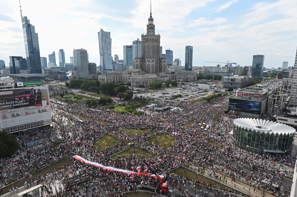 8月1日,人們在波蘭華沙參加紀念活動。
