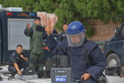 圖為8月22日,涉爆處置小組特警在進(jìn)行爆炸物處置演練。
