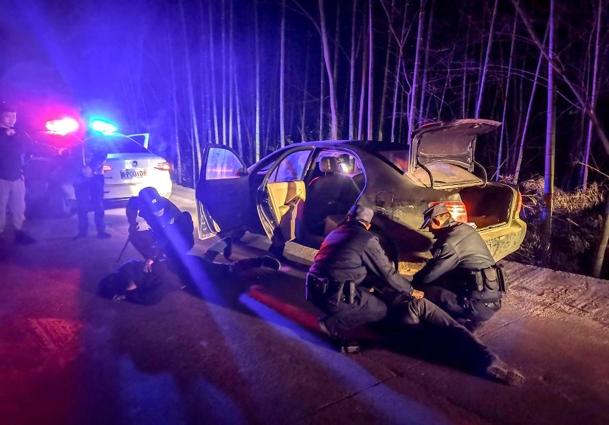 1月11日,安徽省涇縣公安局蔡村派出所民警開展夜巡時攔停一臺可疑車輛,查獲強光手電一個、熱成像儀一臺、氣槍一支,2名違法嫌疑人當場被民警傳喚至派出所接受調查。