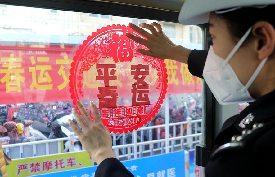 1月7日,安徽省舒城縣公安局交管大隊民警走進轄區(qū)客運總站向駕乘人員普及冬季出行安全知識,并贈送與“平安春運”有關的剪紙、張貼畫等。
