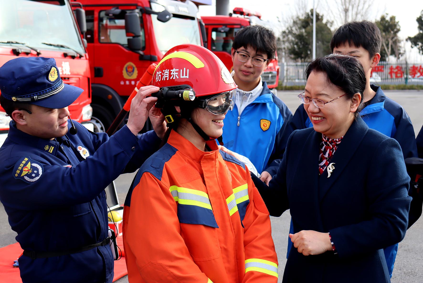 2月22日,十四屆全國人大代表、山東省棗莊市第三中學高級教師孫曉穎,帶領學生深入基層消防隊站進行實地調研。