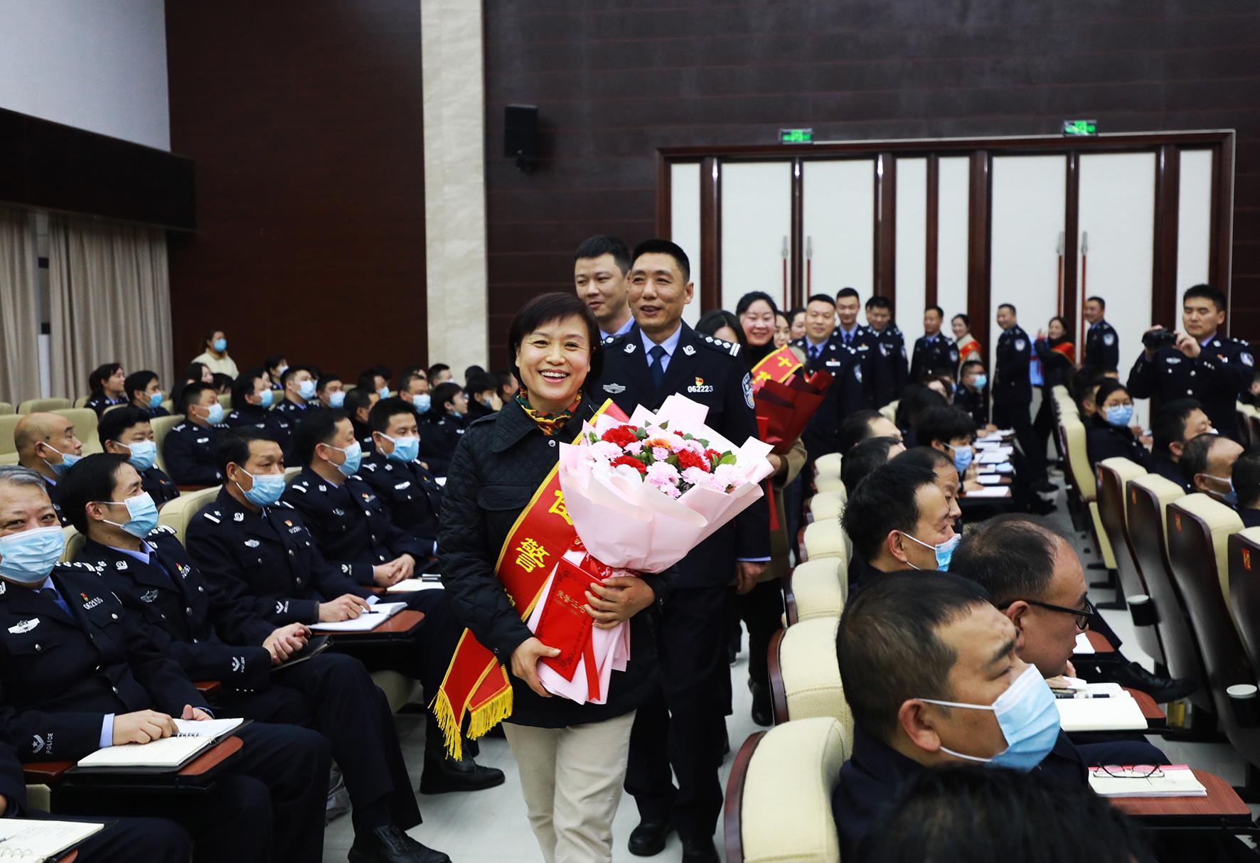2月8日,在湖北省秭歸縣公安局表彰優(yōu)秀警嫂的現(xiàn)場,10名民警突然上演了一場”早有預謀”的浪漫演出,為當選優(yōu)秀警嫂的妻子送上充滿愛意與感激的鮮花,一起并肩走上領獎臺。