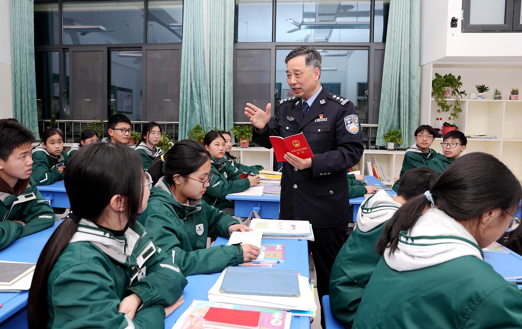 3月22日,江蘇省宿遷市公安局民警利用學(xué)生晚課時(shí)間,開(kāi)展法治宣教活動(dòng),守護(hù)校園平安,助力學(xué)生健康成長(zhǎng)。