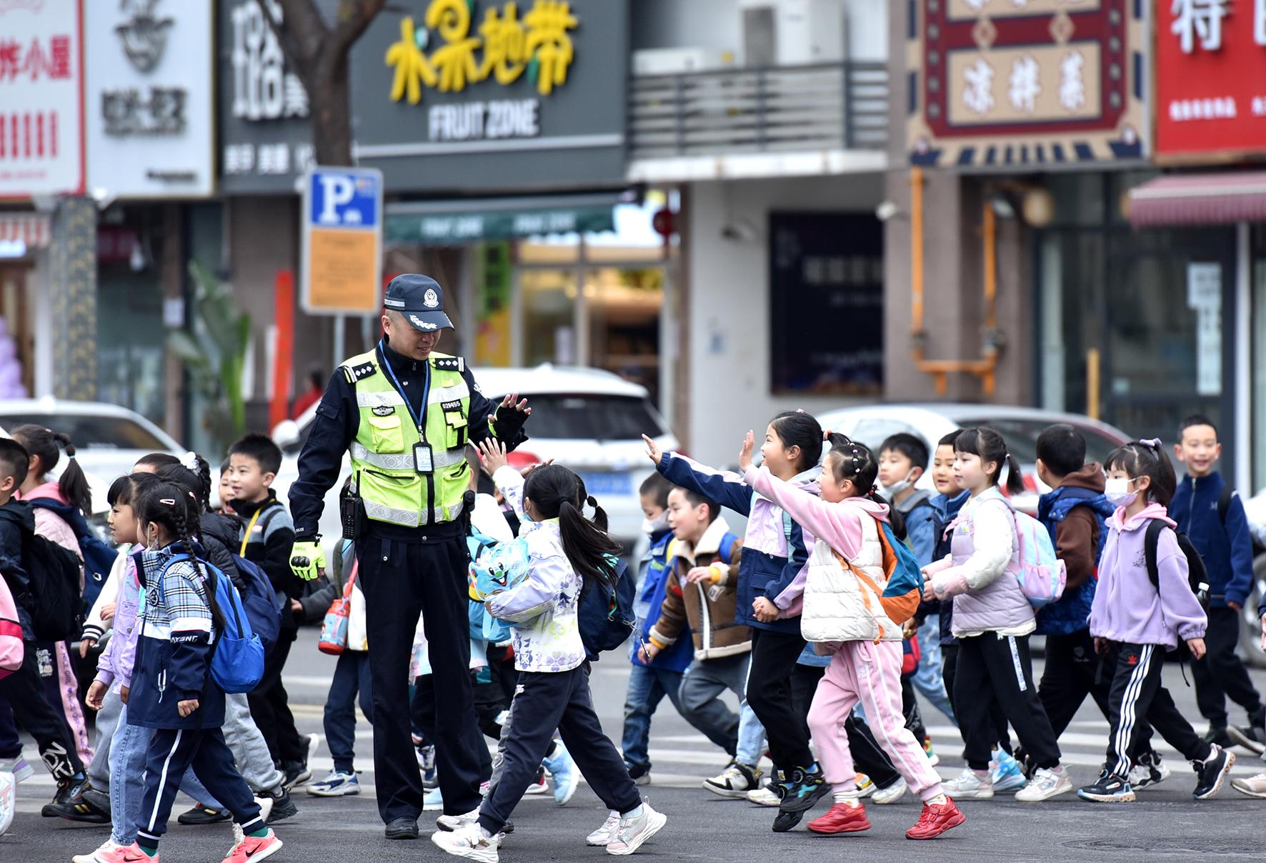 3月27日,四川省綿陽(yáng)市多所小學(xué)組織學(xué)生開(kāi)展春游活動(dòng),綿陽(yáng)市公安局交警支隊(duì)直屬一大隊(duì)增派警力在學(xué)校周邊、復(fù)雜路段指揮護(hù)送師生步行或乘車(chē)出行,確保安全和道路暢通。