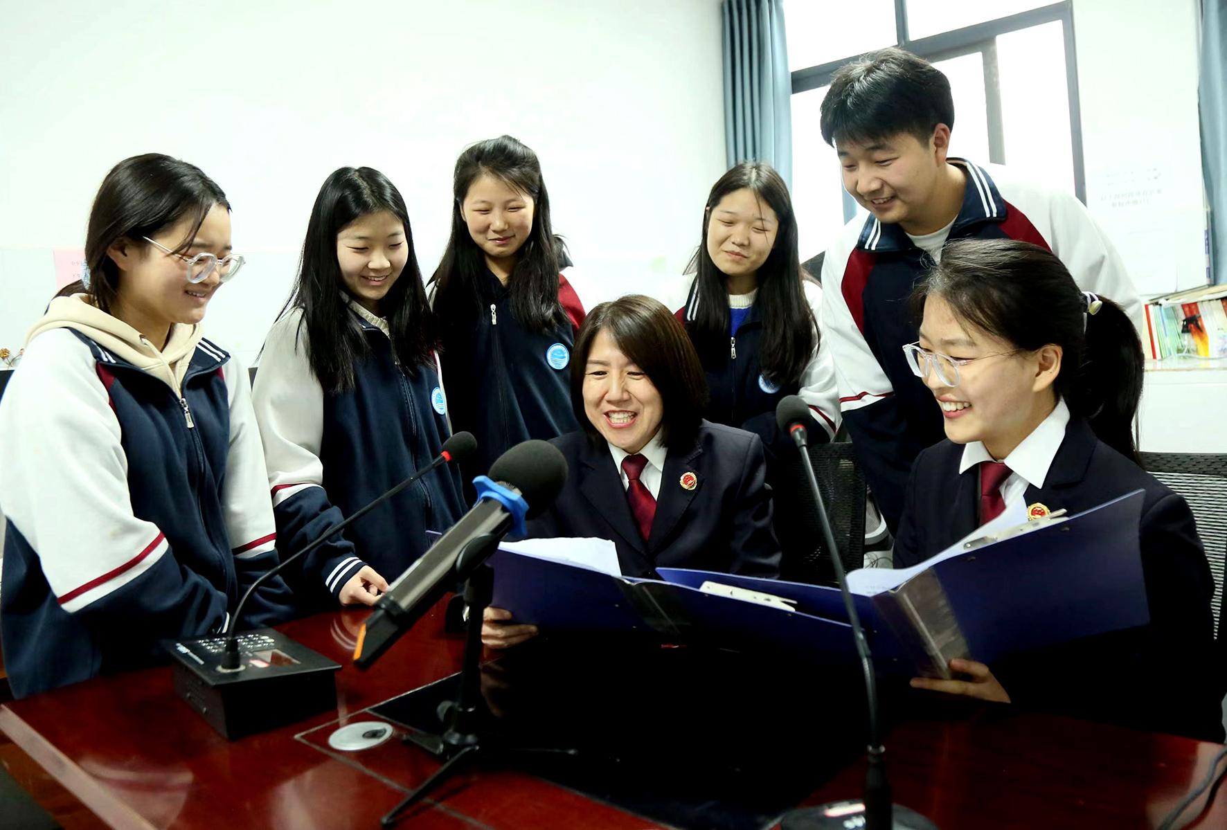 4月24日,河南省汝陽(yáng)縣人民檢察院檢察官與汝陽(yáng)縣中等專業(yè)學(xué)校廣播站播音員共同商討辦好普法專欄。