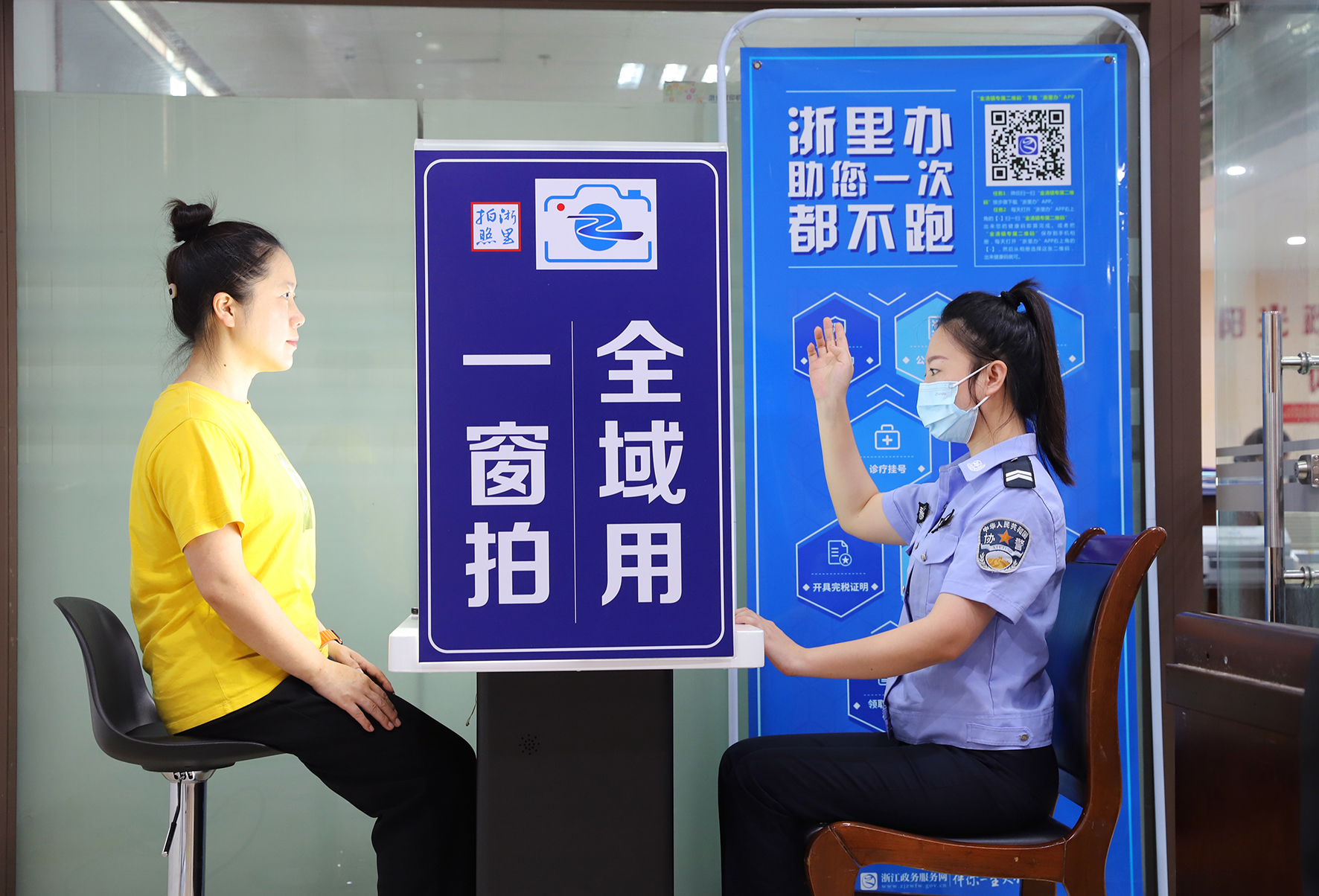 6月13日,在浙江省臺(tái)州市路橋區(qū)金清鎮(zhèn)為民服務(wù)中心公安窗口,警務(wù)人員利用“浙里拍照”系統(tǒng)為群眾拍攝身份證照片。近期,臺(tái)州市路橋區(qū)在服務(wù)民生辦實(shí)事中實(shí)施“一窗通拍,全域應(yīng)用”舉措,公安、人社、衛(wèi)健、教體、司法等25個(gè)部門建立協(xié)同合作,圍繞176個(gè)涉照事項(xiàng),通過“浙里辦”系統(tǒng)共享12種規(guī)格、背景底色的證照,實(shí)現(xiàn)身份證、出入境證件、駕駛證、社會(huì)保障卡、老年人優(yōu)待證、保安員證等涉照業(yè)務(wù)系統(tǒng)暢通應(yīng)用。