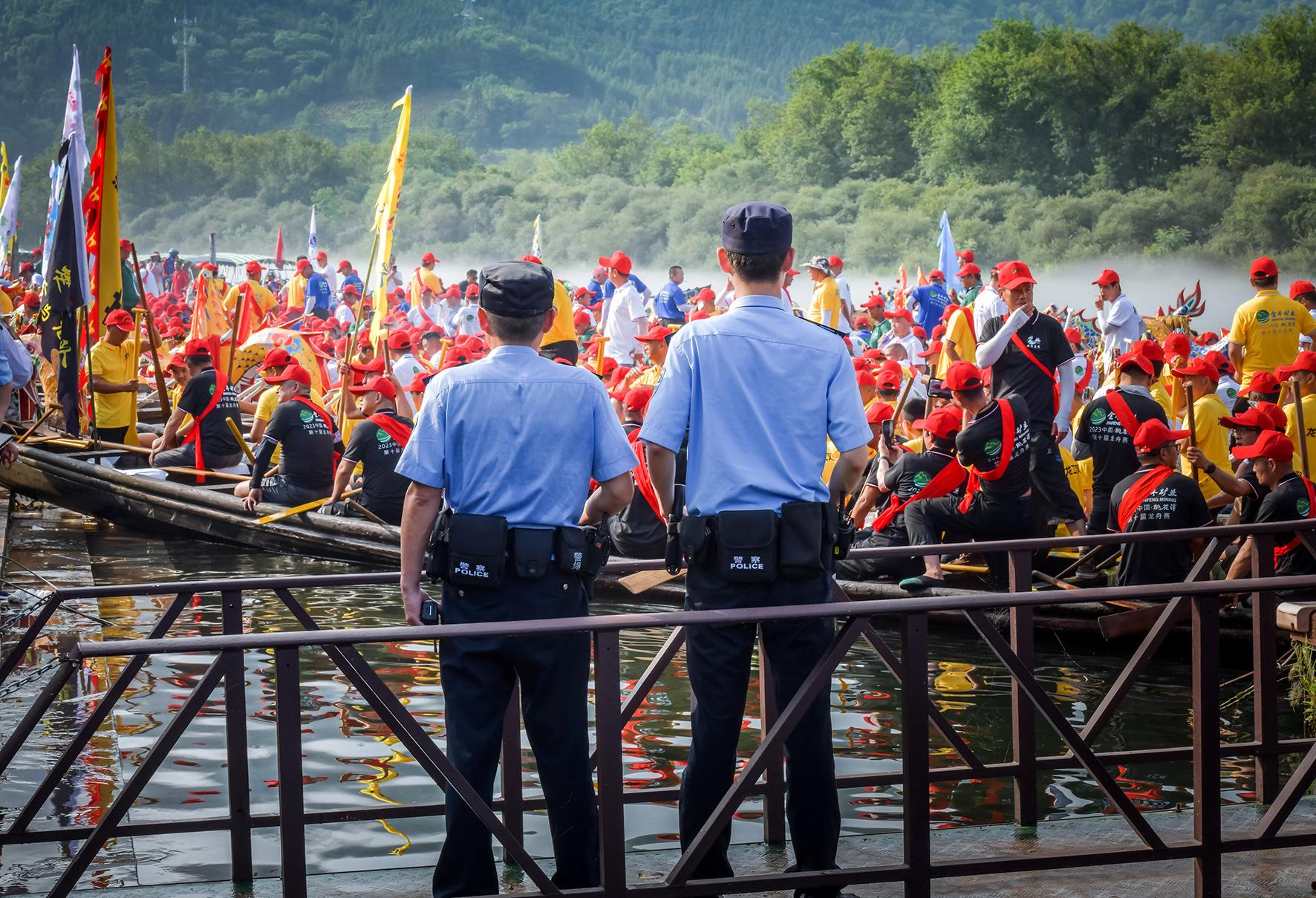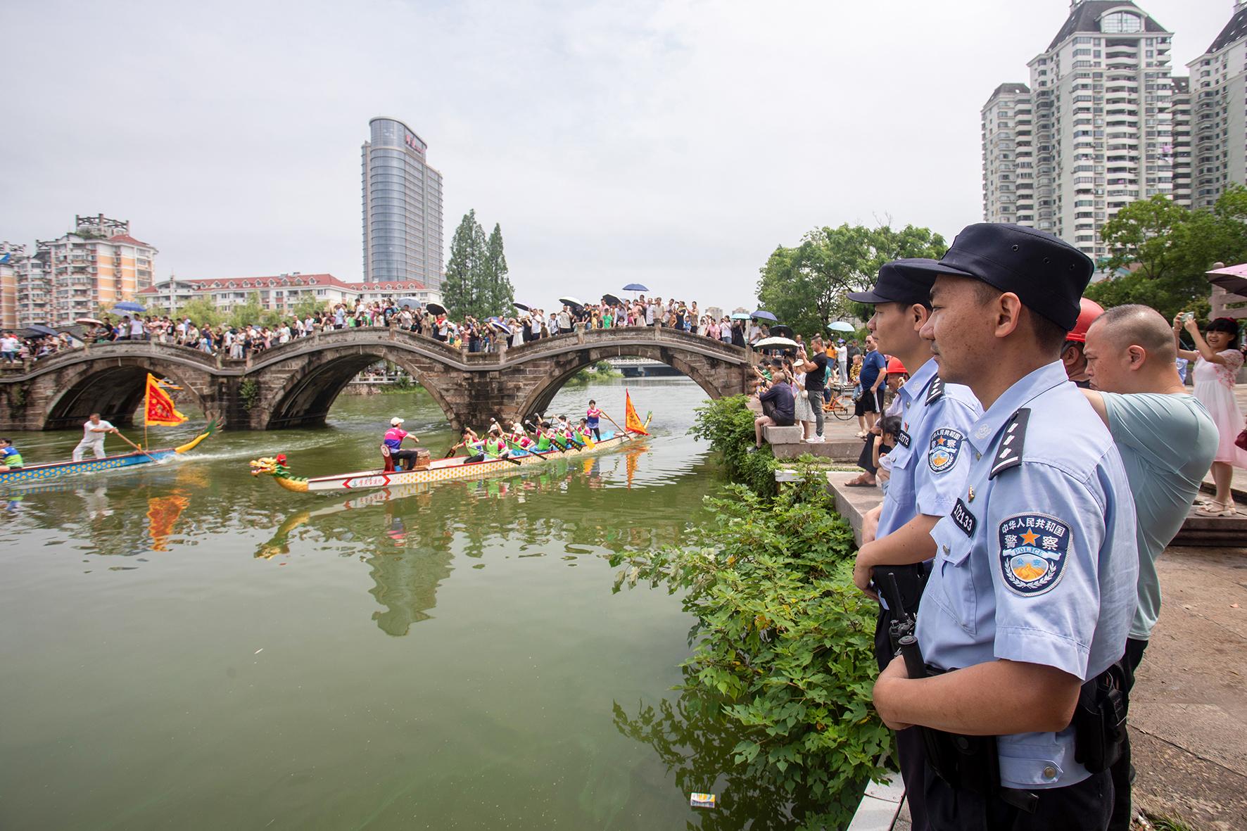 6月20日,江西省共青城市隆重舉辦“全民健身 幸福共青”迎端午龍舟賽,現(xiàn)場觀眾近萬人。共青城市公安局出動300余名警力,確保龍舟賽活動安全有序。
