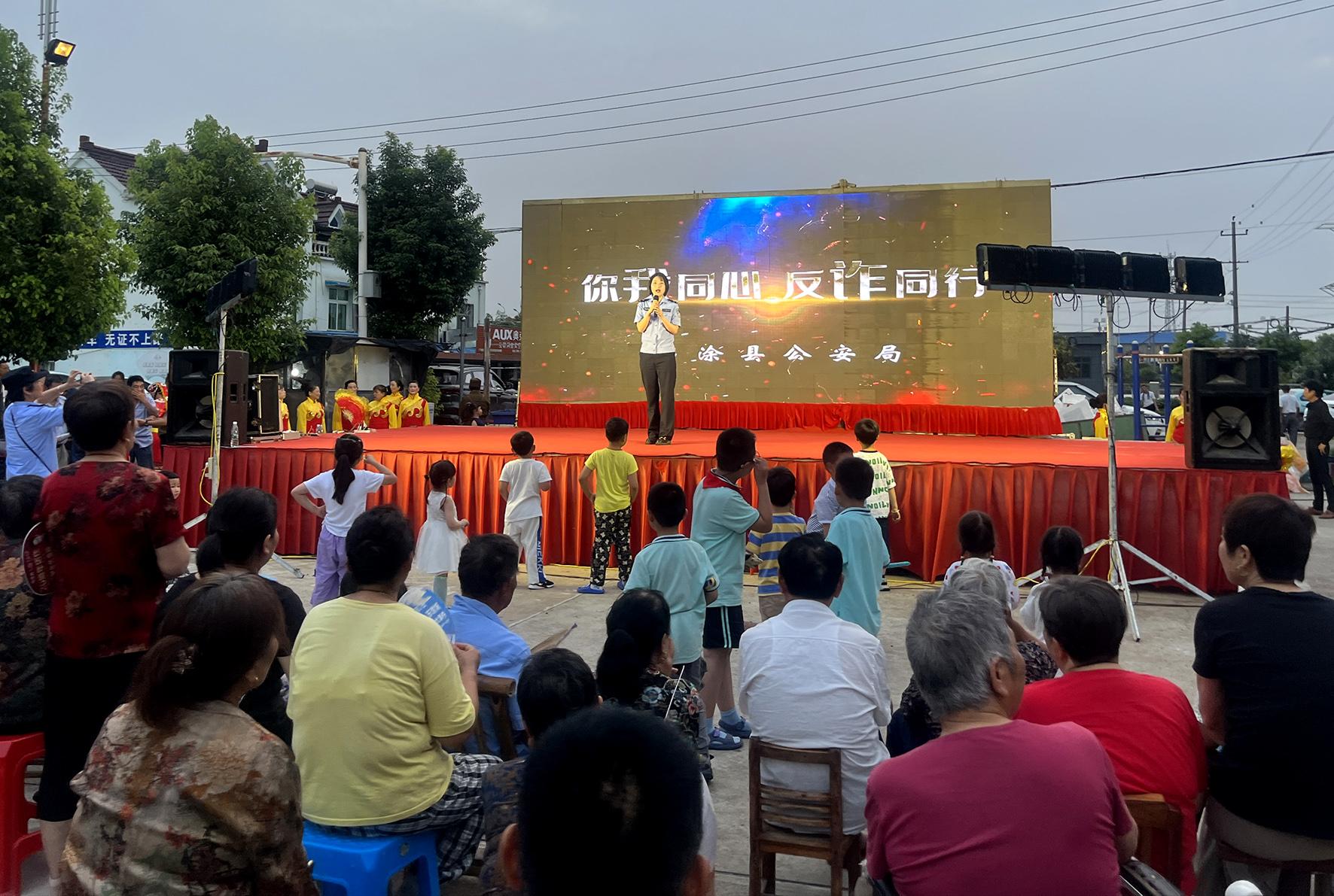 6月22日晚,安徽省當(dāng)涂縣公安局姑孰派出所深入黃山社區(qū),結(jié)合社區(qū)舉辦的端午佳節(jié)文藝匯演活動,向現(xiàn)場居民開展反電詐知識宣傳活動。