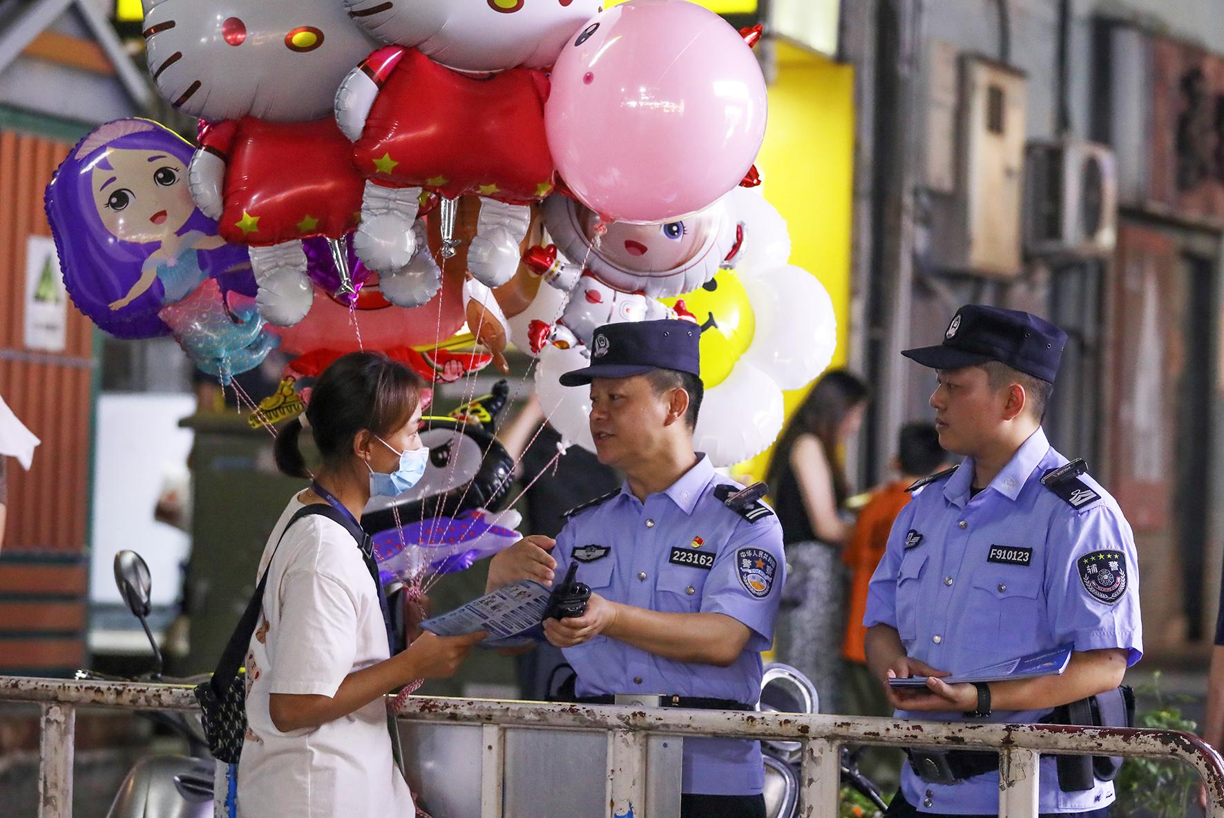 圖為6月22日,民輔警在夜市街區(qū)巡邏,確保夜市經(jīng)營活動安全有序。