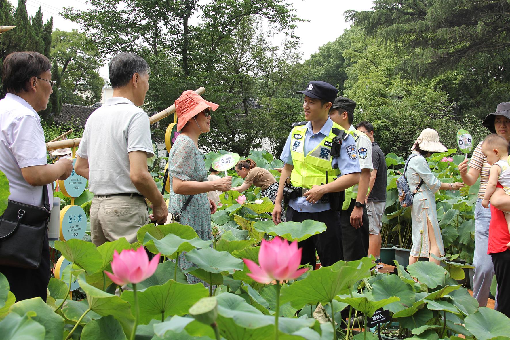 連日來,上海市公安局嘉定分局組織民輔警會同平安志愿者在第十屆上海荷花睡蓮展主、分會場加強(qiáng)治安巡防、秩序維護(hù)和防范宣傳,守護(hù)市民游園平安。