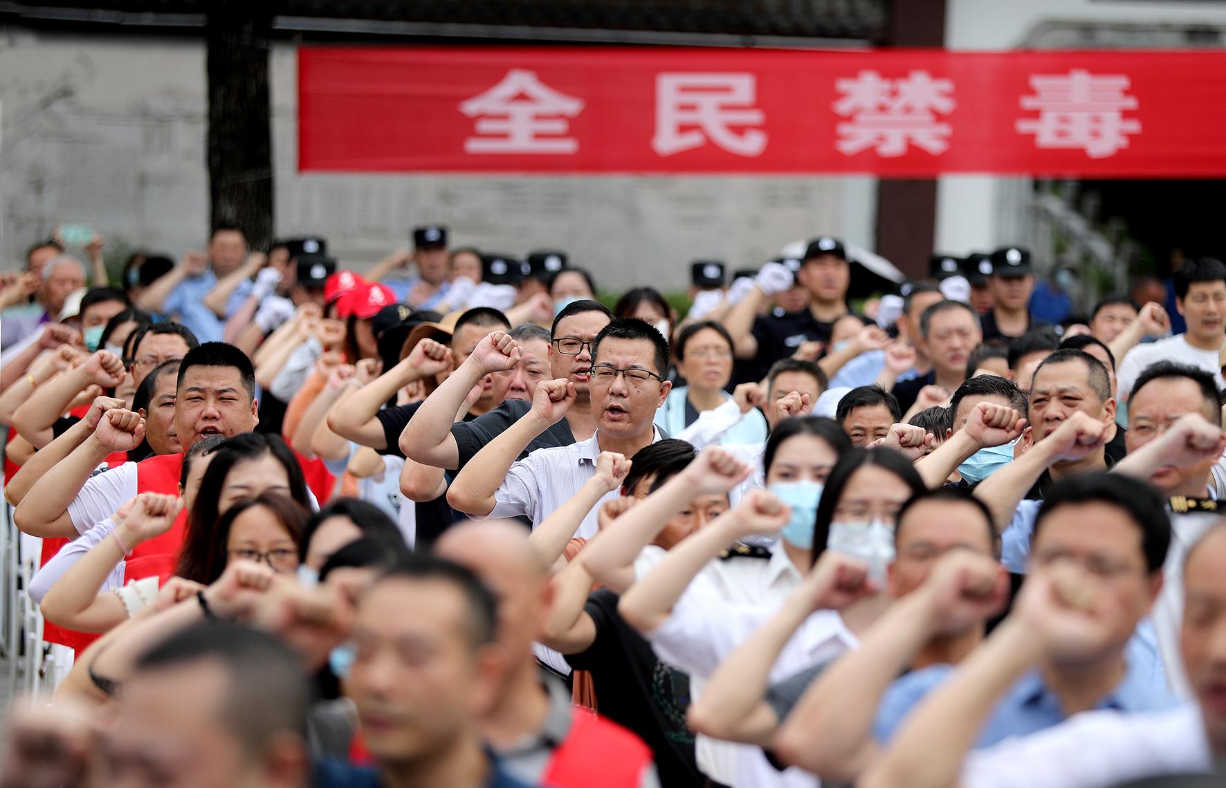 6月25日,湖北省荊門市禁毒委舉行“6·26”國際禁毒日集中宣傳暨銷毀毒品活動,300多名市民集體進(jìn)行禁毒宣誓。