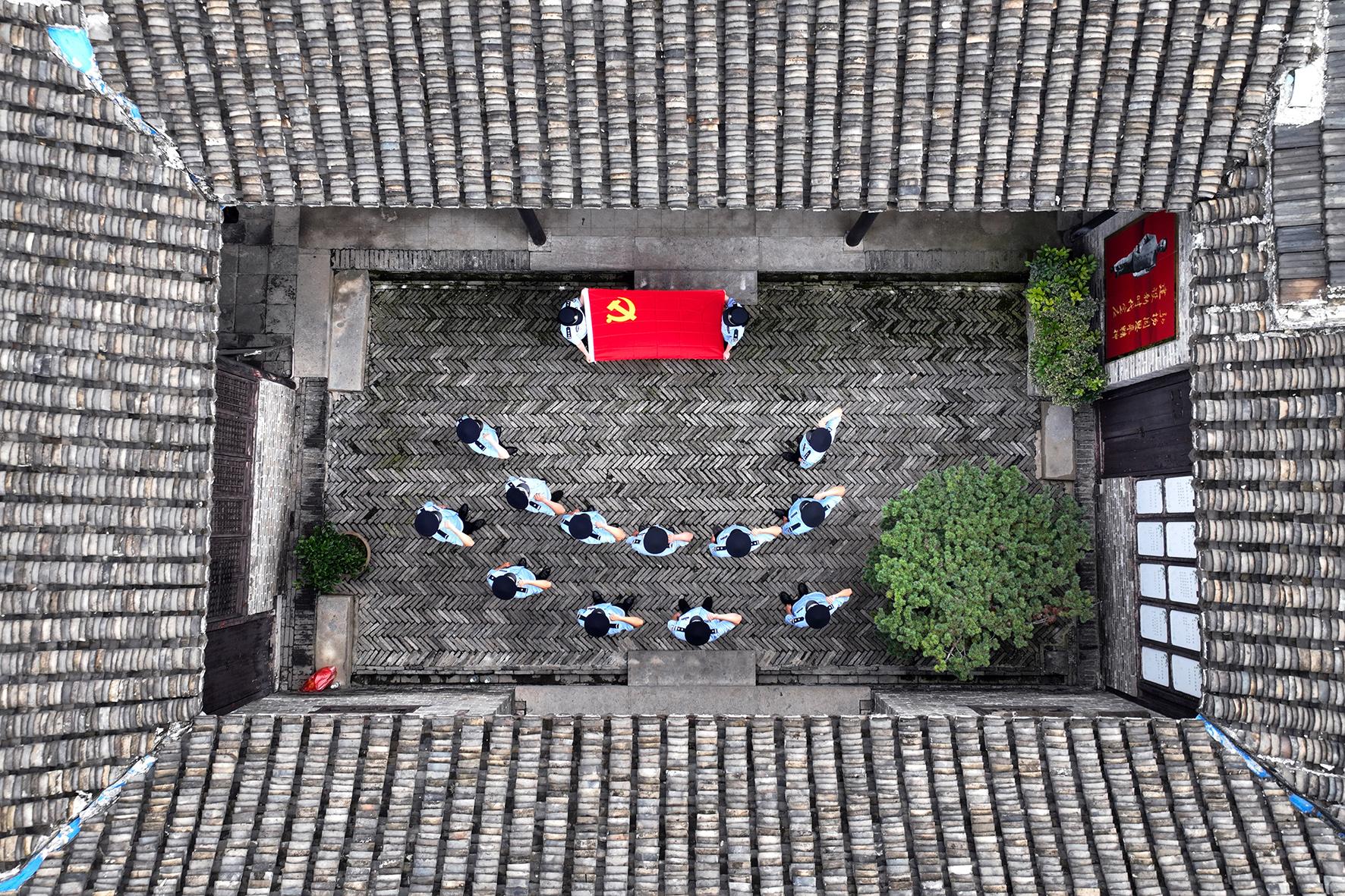 6月30日, 江蘇省揚州市寶應縣公安局城北派出所黨員民警在周恩來少年時期讀書處重溫入黨誓詞,激勵廣大黨員民警不忘初心、牢記使命,傳承革命精神,鍛造忠誠警魂。