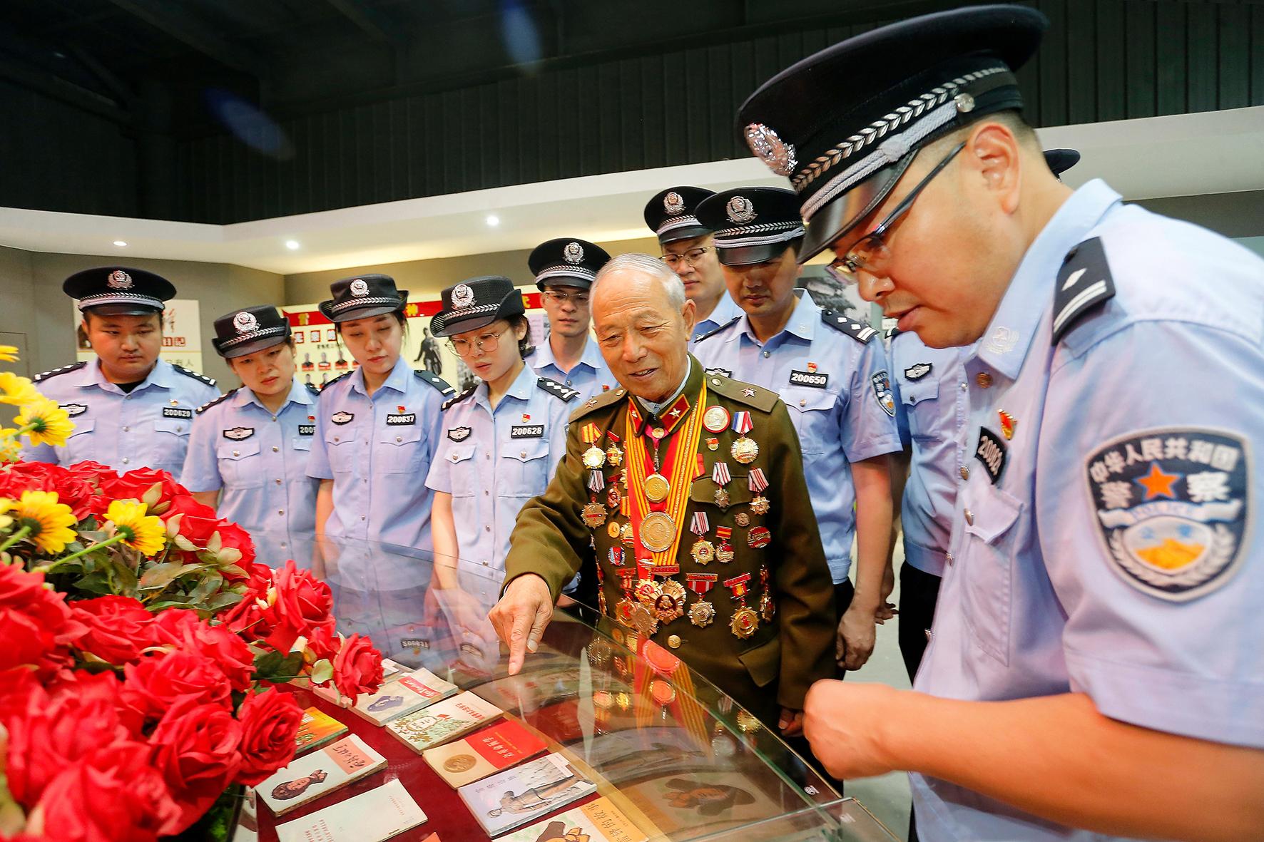 圖為雷鋒生前戰(zhàn)友、學雷鋒標兵趙明才向民警講述雷鋒生平事跡。