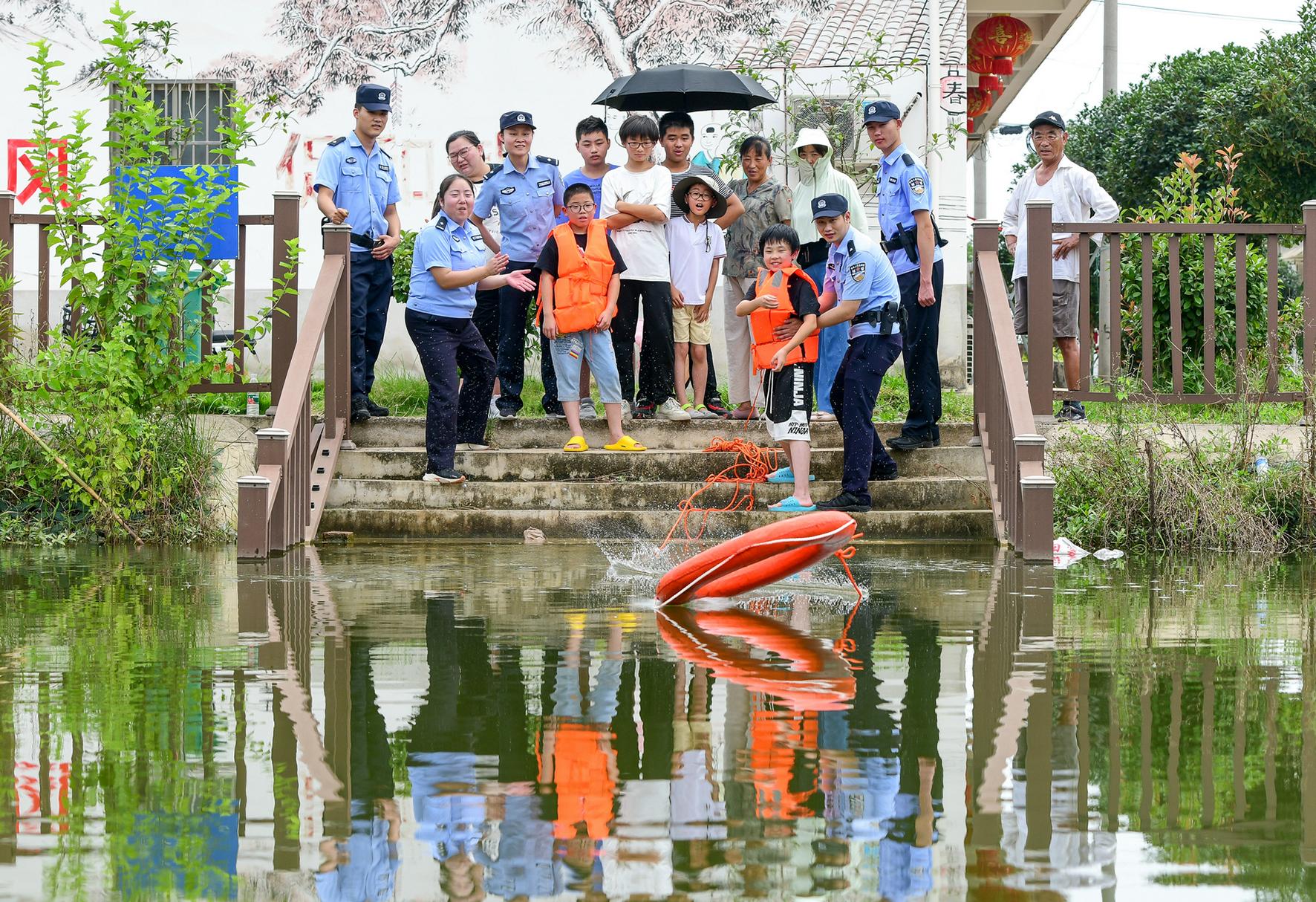 7月6日,安徽省馬鞍山市和縣公安局石楊派出所民警正在石楊鎮(zhèn)幸福村向留守兒童講解暑期防溺水知識,以提高他們知危險(xiǎn)、會避險(xiǎn)的意識和自我保護(hù)能力。