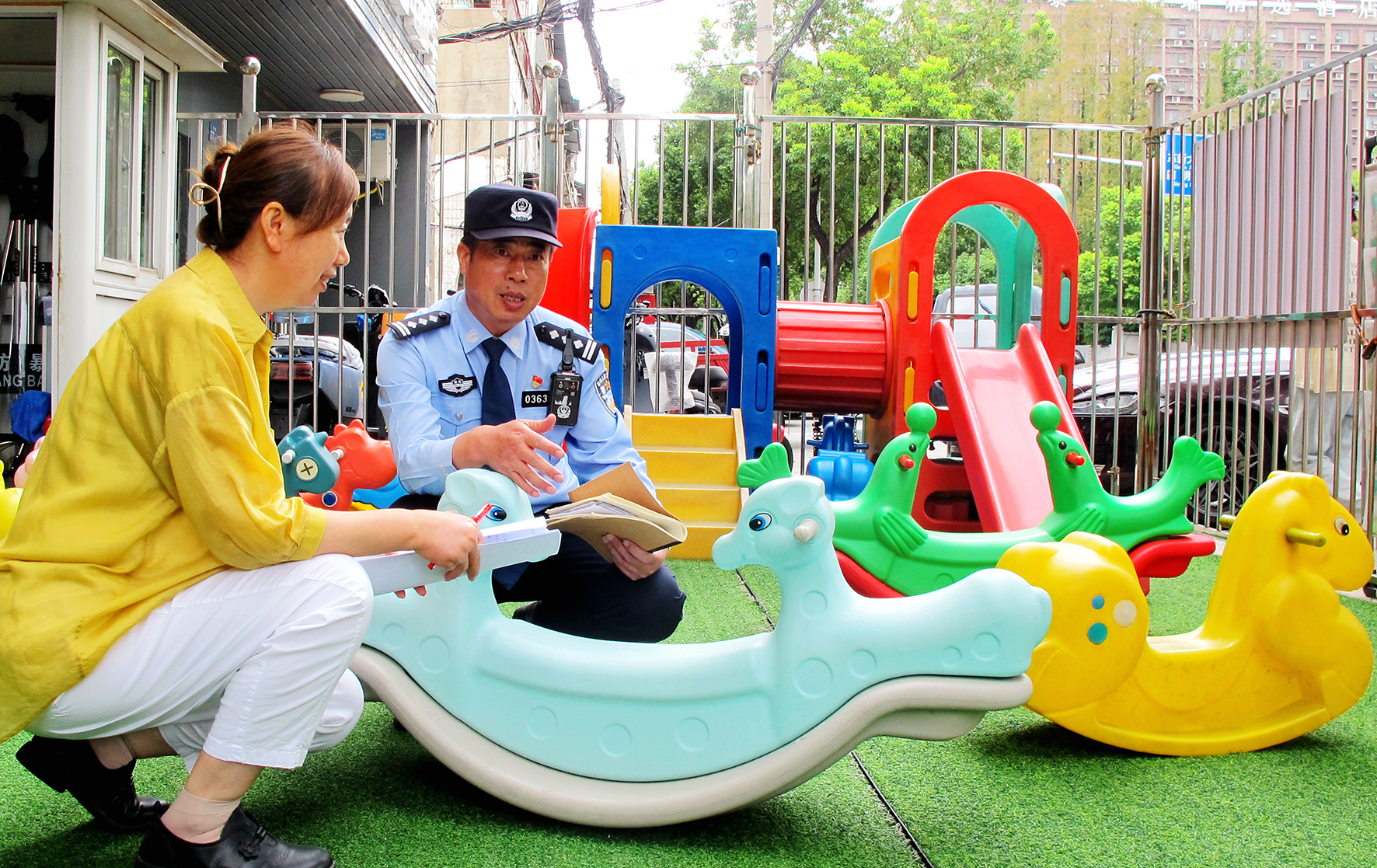 8月28日,湖北省武漢市公安局東西湖區(qū)分局長青街派出所華星社區(qū)警務室民警對轄區(qū)幼兒園及學校設施進行安全隱患排查和清理。