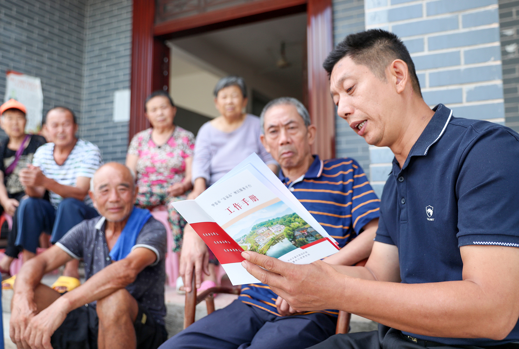 圖一:8月30日,祿市鎮(zhèn)的工作人員在涼水井村一農(nóng)家宣傳“安易辦”網(wǎng)絡(luò)辦事便民服務(wù)平臺(tái)。