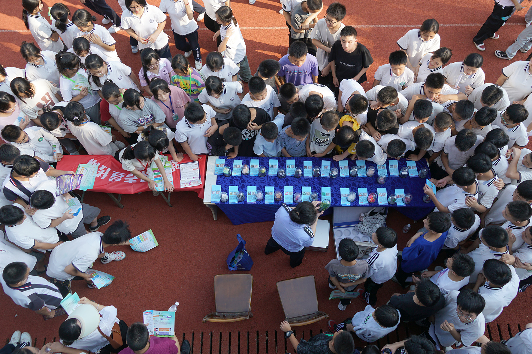 9月4日,重慶市涪陵強制隔離戒毒所民警在武隆區(qū)平橋中學秋期開學典禮上開展禁毒宣傳。
