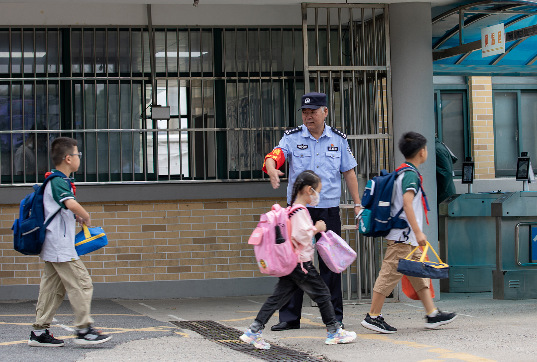 9月4日,江蘇省宜興市公安局民輔警開啟新學期的“護學行動”,全力守護師生的出行安全。