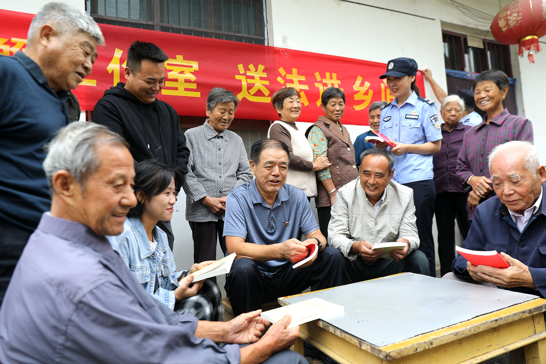 9月22日,安徽省舒城縣公安局杭埠派出所“老吳調(diào)解工作室”吳修富攜同駐村民警來到轄區(qū)河南村,向村民開展法治宣傳。今年66歲的吳修富是一名退休民警,被派出所特聘為調(diào)解工作室調(diào)解員,負(fù)責(zé)派出所疑難復(fù)雜矛盾糾紛調(diào)處?!袄蠀钦{(diào)解工作室”是全縣首個(gè)以個(gè)人名義命名的警民聯(lián)調(diào)室,遇事開展調(diào)解空閑時(shí)間下鄉(xiāng)普法。