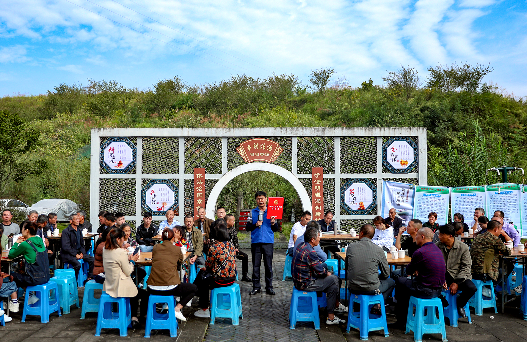 四川省華鎣市不斷拓展法治宣傳陣地,利用居民相對(duì)集中的陽和鎮(zhèn)偏巖子移民新村的文體廣場開設(shè)“法治壩壩茶館”,通過舉辦講座、圖文展覽、文藝表演等形式宣傳法律知識(shí)。