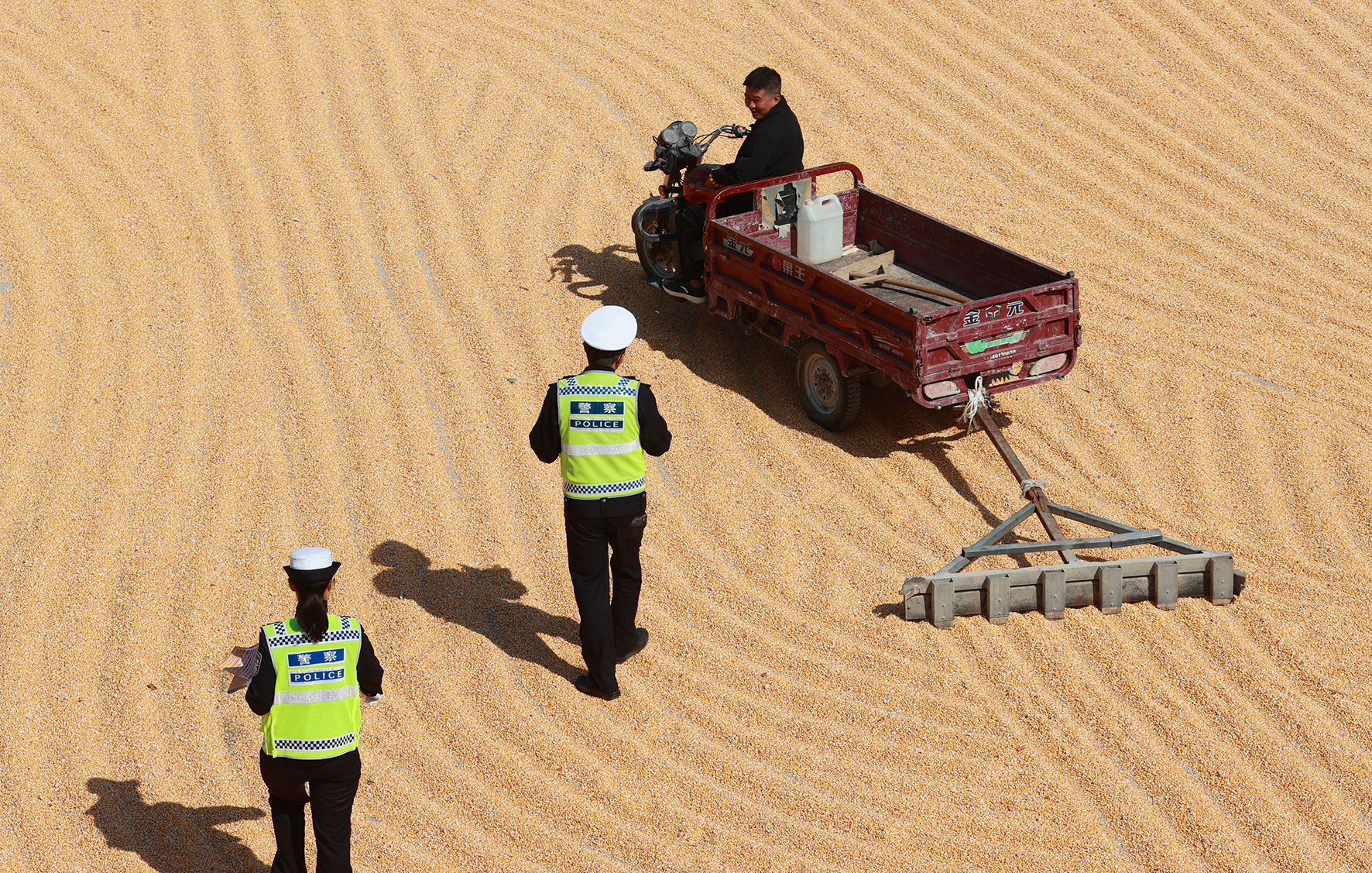 10月16日,陜西省大荔縣公安局交管大隊(duì)民警走進(jìn)韋林鎮(zhèn)30多家機(jī)關(guān)、村部等為方便群眾“開院曬糧”的場地,重點(diǎn)對(duì)晾曬翻攪糧食的摩托車駕駛?cè)藛T進(jìn)行勿忘戴頭盔和禁止酒后駕駛的宣傳,杜絕一切安全隱患。