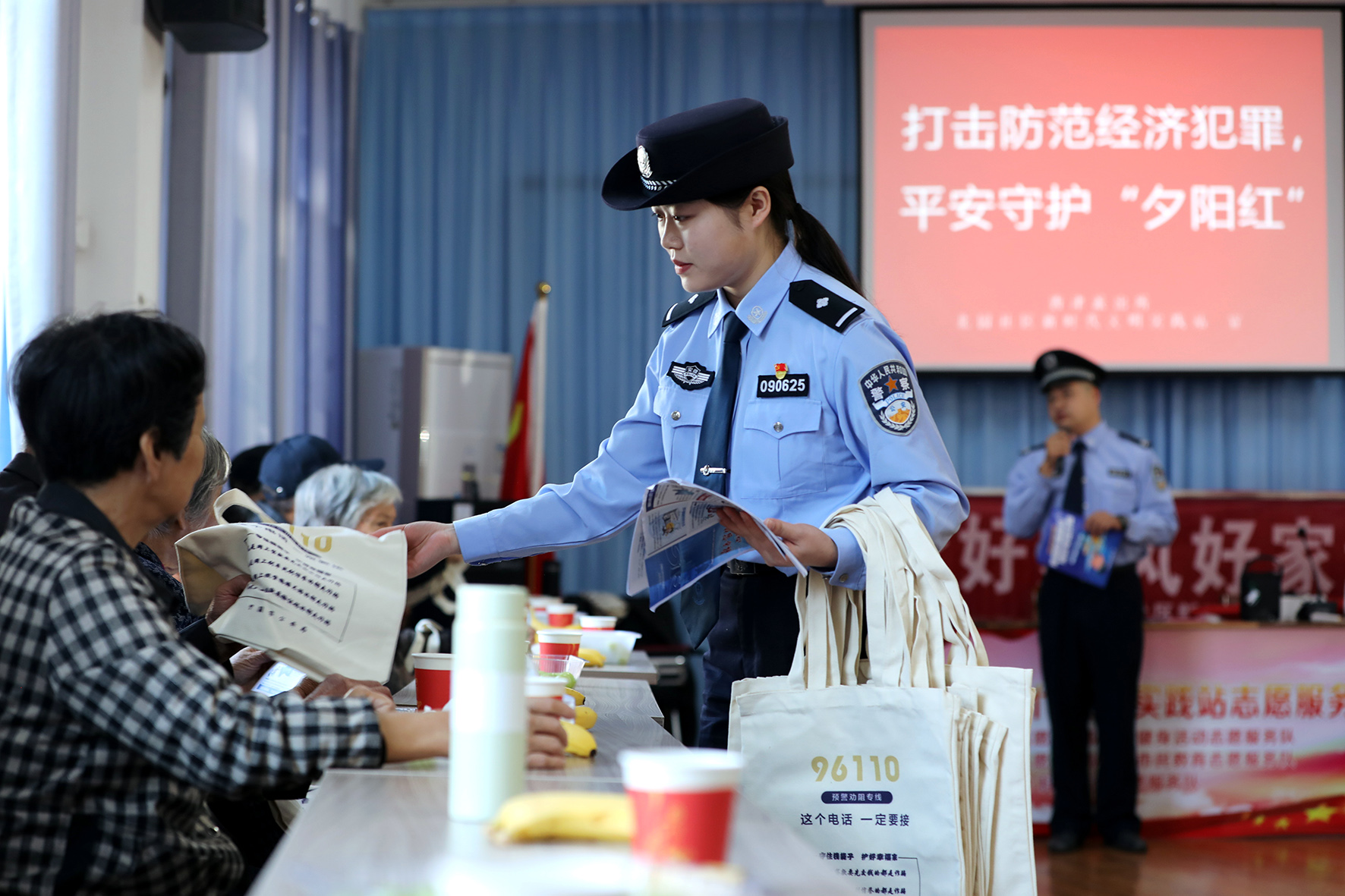 10月23日,安徽省馬鞍山市公安局綜合警務站軍民站組織民警前往社區(qū)開展“九九平安敬老情 守護平安‘夕陽紅’”主題敬老反詐宣傳活動。