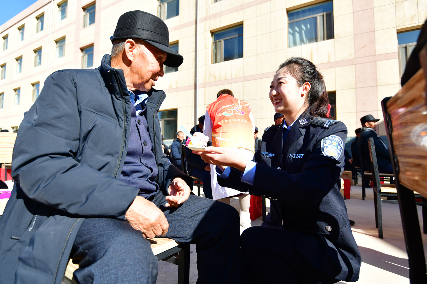 10月23日,甘肅省臨澤縣公安局民警輔警走進臨澤縣中心敬老院,開展“關愛老年人 情暖夕陽紅”送溫暖志愿服務活動。