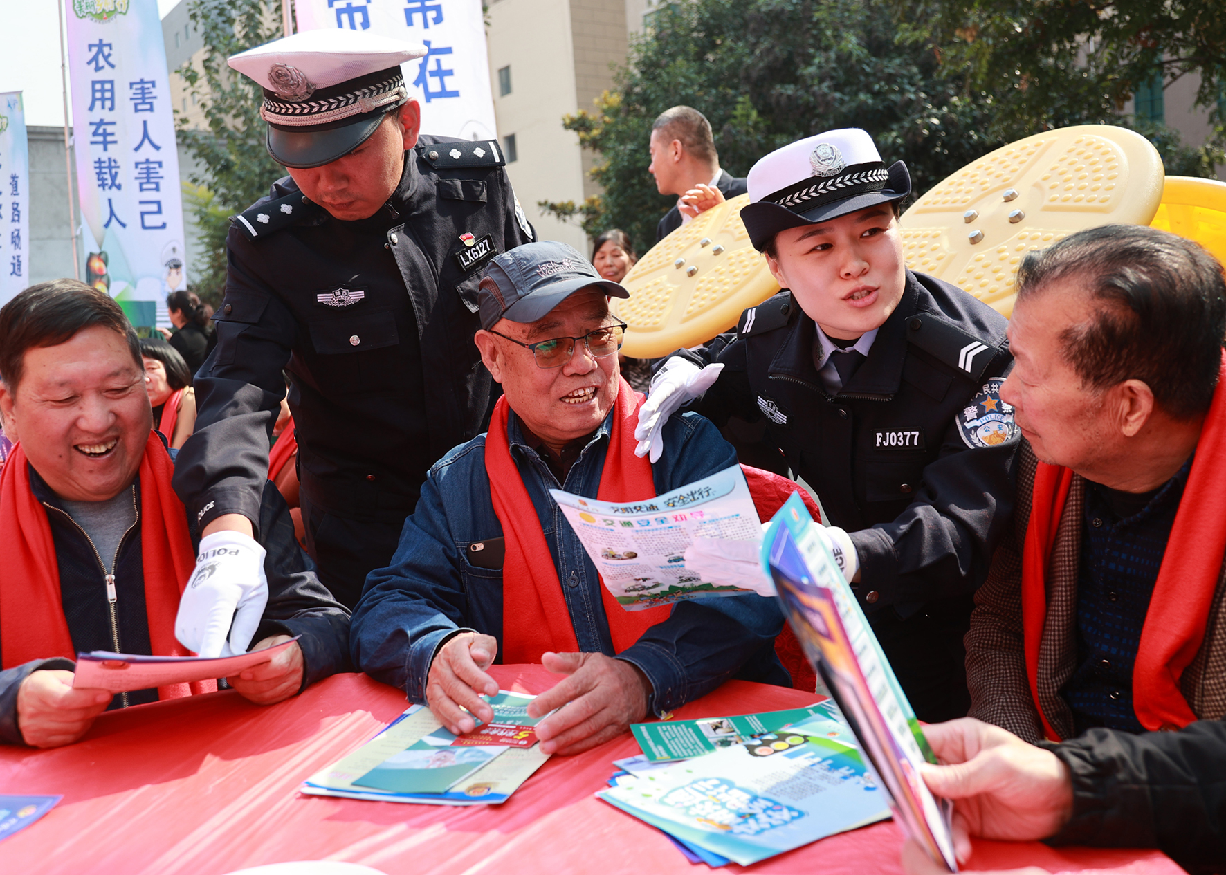 10月23日,陜西省大荔縣公安局交警大隊民警輔警走進社區(qū)向老年人宣傳“一盔一帶”“一老一小”交通安全和防詐騙宣傳活動。