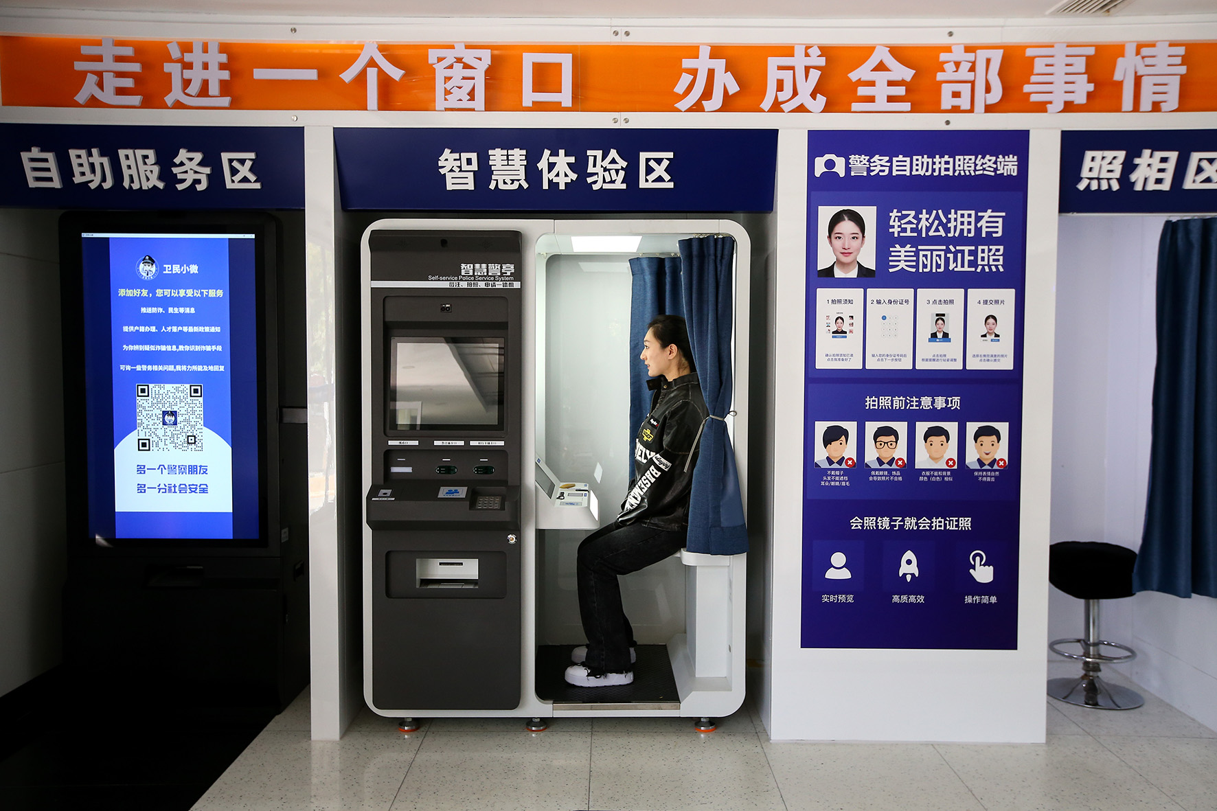 圖為10月25日,群眾在四里村派出所“一窗通辦”服務大廳,通過自助設備拍照采集個人信息,辦理相關業(yè)務。