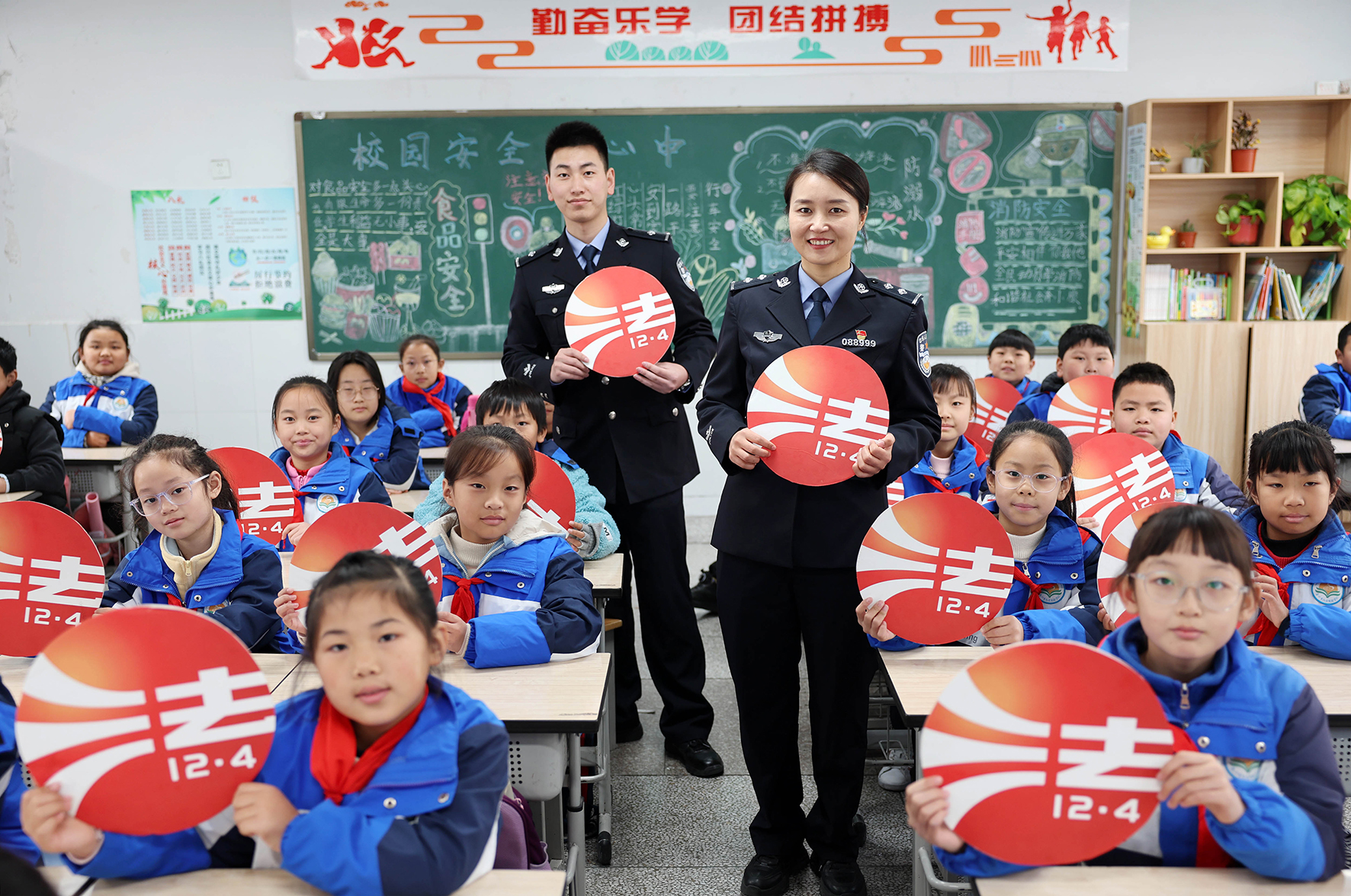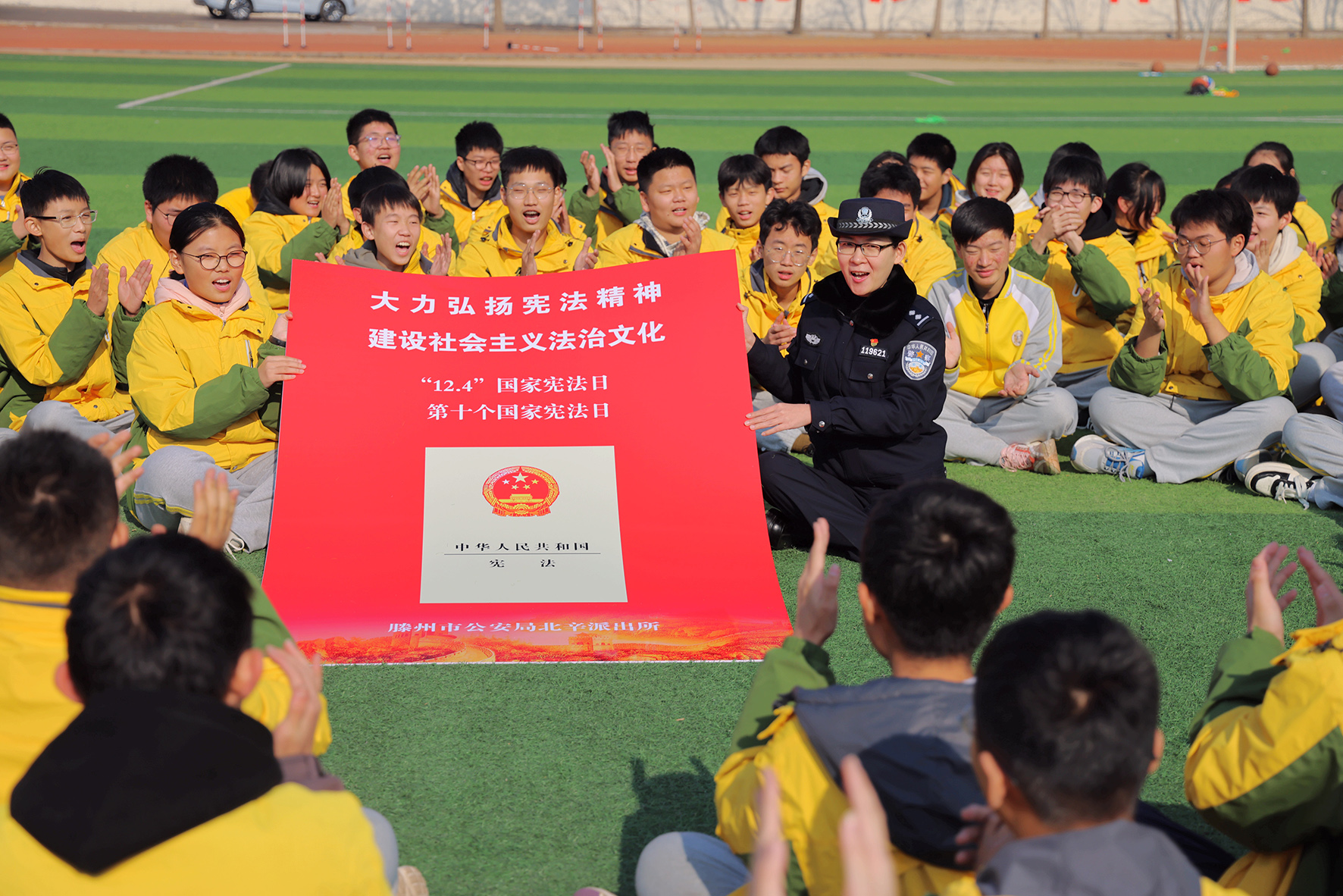 12月4日,山東省滕州市公安局北辛派出所民警為學(xué)生們講解憲法知識。