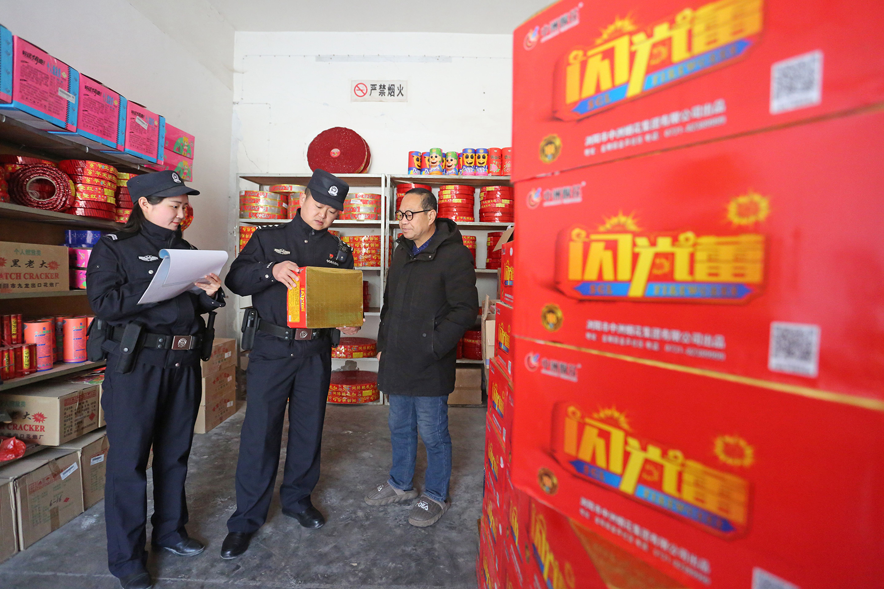 1月7日,陜西省渭南市合陽(yáng)縣公安局新池派出所民警對(duì)煙花爆竹銷(xiāo)售點(diǎn)進(jìn)行全面檢查。