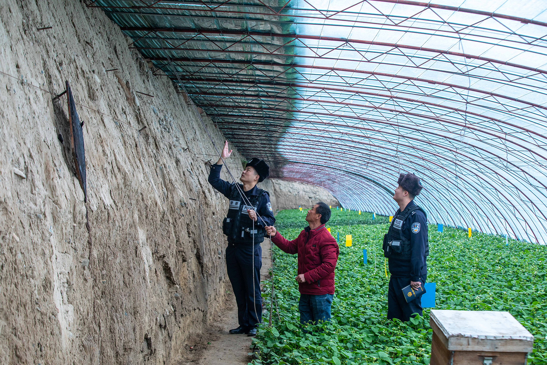1月19日,新疆伊犁邊境管理支隊霍爾果斯邊境派出所組織民警成立“服務(wù)小分隊”,走訪農(nóng)戶并幫助修繕加固草莓種植大棚。