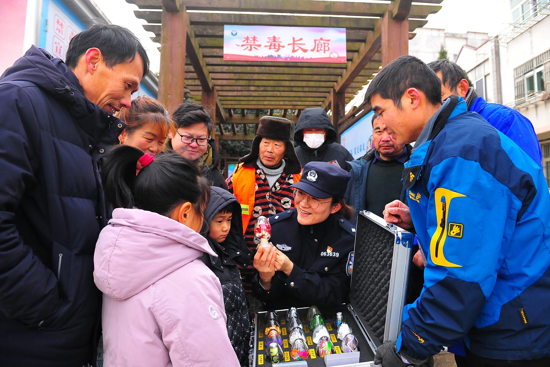 圖為1月22日,民警在禁毒長廊向群眾宣傳禁毒知識。