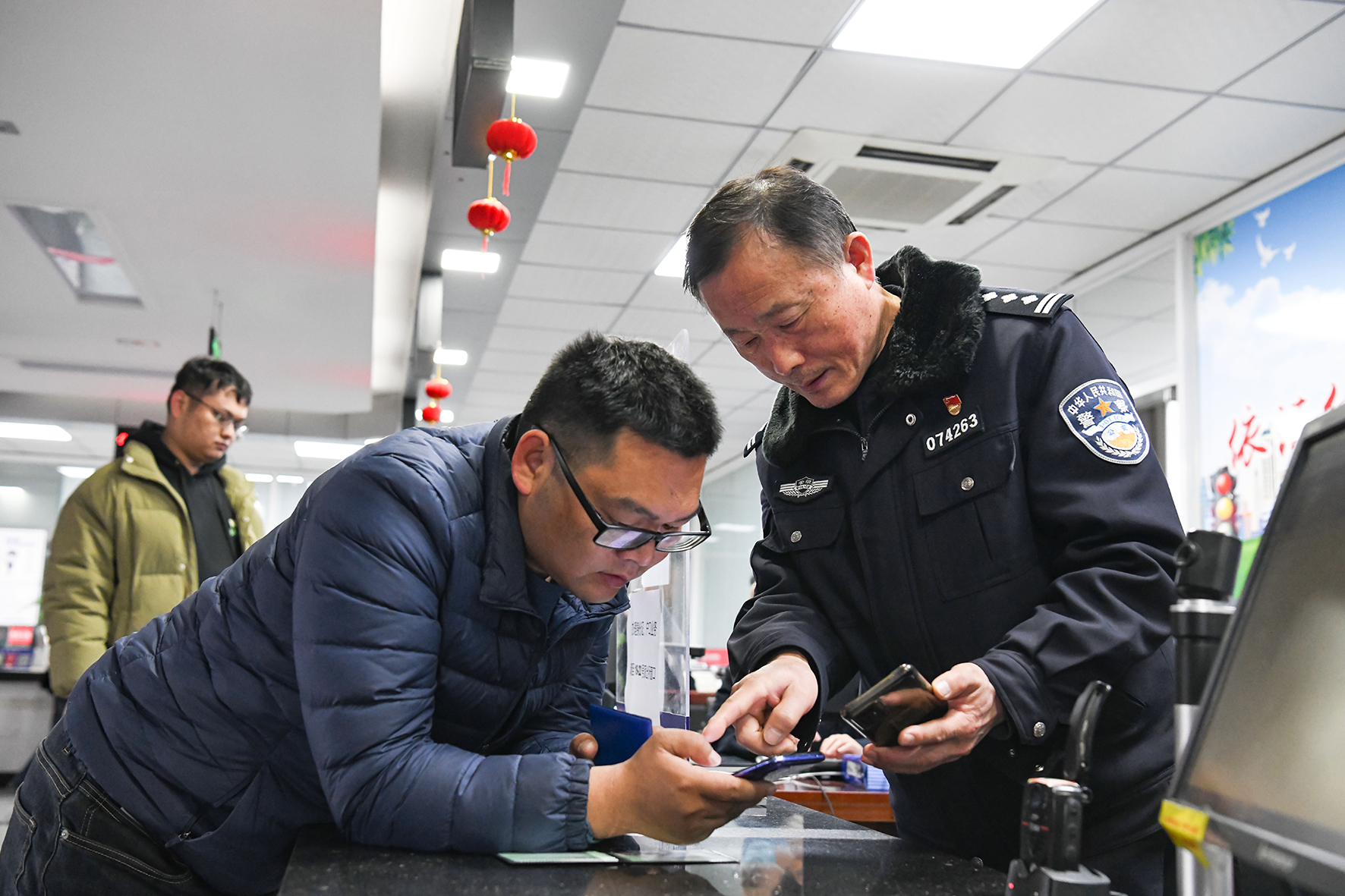 圖為2月21日,民警正在為群眾辦理證件。