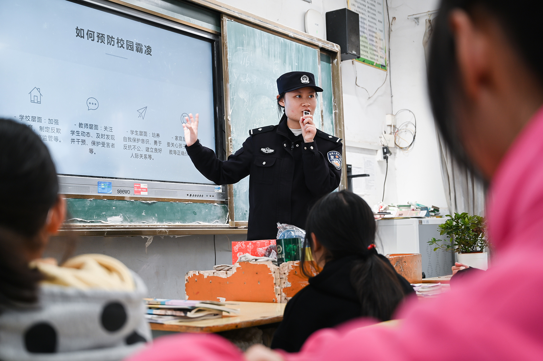 3月15日,安徽省馬鞍山市和縣公安局民警在石楊中學開展“拒絕校園霸凌”主題法治宣講,引導青少年樹立正確的人生觀和價值觀。