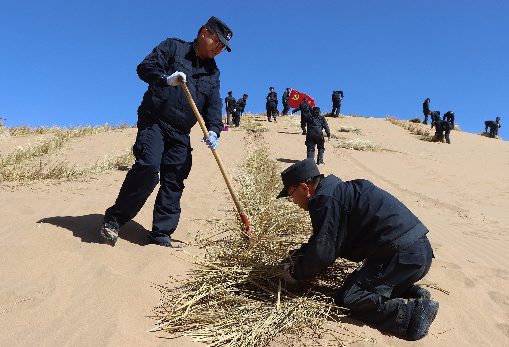 3月19日,甘肅省武威市古浪縣公安局積極響應縣委、縣政府號召,組織各警種部門民輔警200余人,深入騰格里沙漠南緣、古浪縣北部頭道溝壓沙區(qū),開展全縣春季義務壓沙活動。